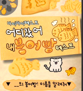 <어디갔어 내 붕어빵 테스트>는 붕어빵을 테마로 한 MBTI 심리테스트로, 참여자의 성격 유형을 재미있게 분석할 수 있는 도구입니다.